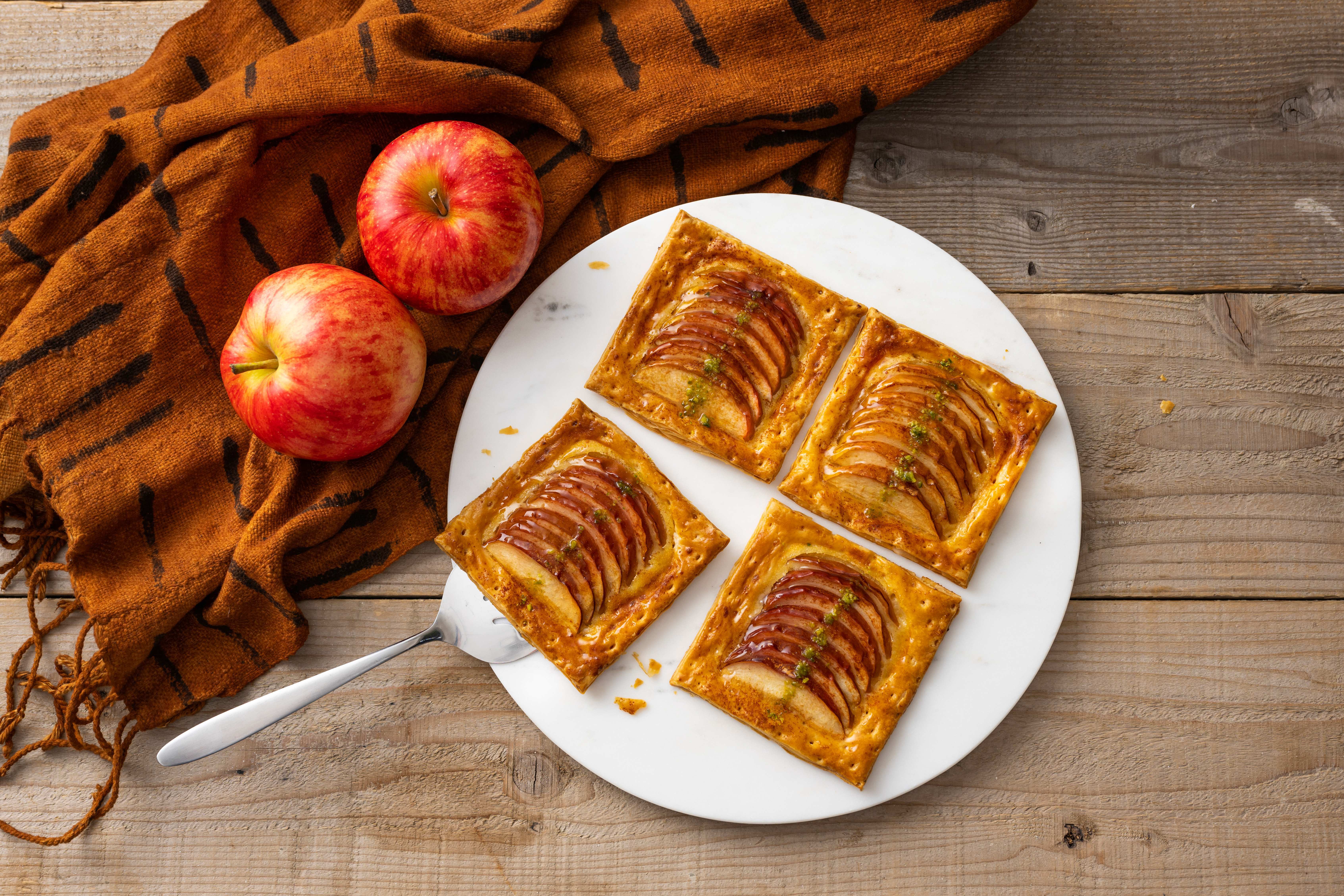 薄くスライスした青森県産りんごをのせて、サクサクに焼き上げたりんごパイ。