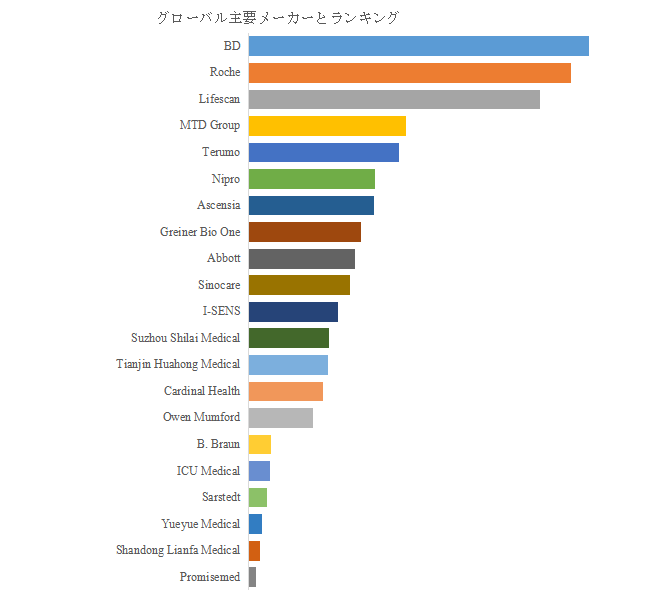 ランセット市場は、世界的な大手医療機器メーカーによって支えられている。LP Informationの分析によると、BD、Roche、Lifescan、MTD Group、Terumo、Nipro、Greiner Bio-One、Ascensia、Abbott、Sinocareなどが主要プレイヤーとして挙げられる。2024年時点で、これら上位10社が売上ベースで世界市場の約54.0%を占めている。この集中度は、製品品質、信頼性、供給体制の確立が競争優位性を左右する市場特性を示している。特にBDやRocheなどは、自社のグルコースモニタリングシステムと統合した製品展開を進め、ブランドエコシステムを形成している。一方で、新興企業やアジアの医療機器メーカーは、価格競争力と地域密着型サービスを武器に市場参入を加速しており、今後の競争構図に変化をもたらす可能性が高い。