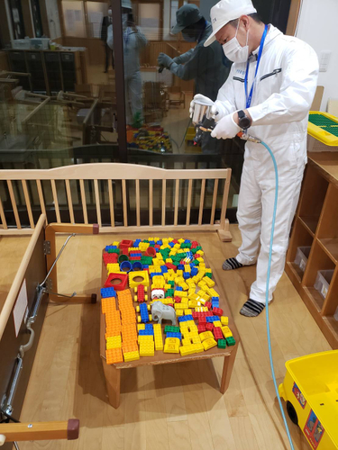 新型コロナウイルスの感染拡大に歯止めが掛からない現在。1人の感染により複数の家庭へ感染が拡大してしまう恐れがある保育園では、職員が日々細心の注意を払いながら感染症対策を行う必要があります。また、おもちゃなど複数人が触るものが多い環境ではマスクなどの飛沫感染対策だけでなく、接触面での感染対策も重要です。