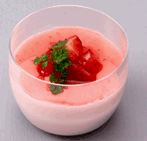 メニュー:ビーフストロガノフ、いちごミルクプリン、コンソメスープ
