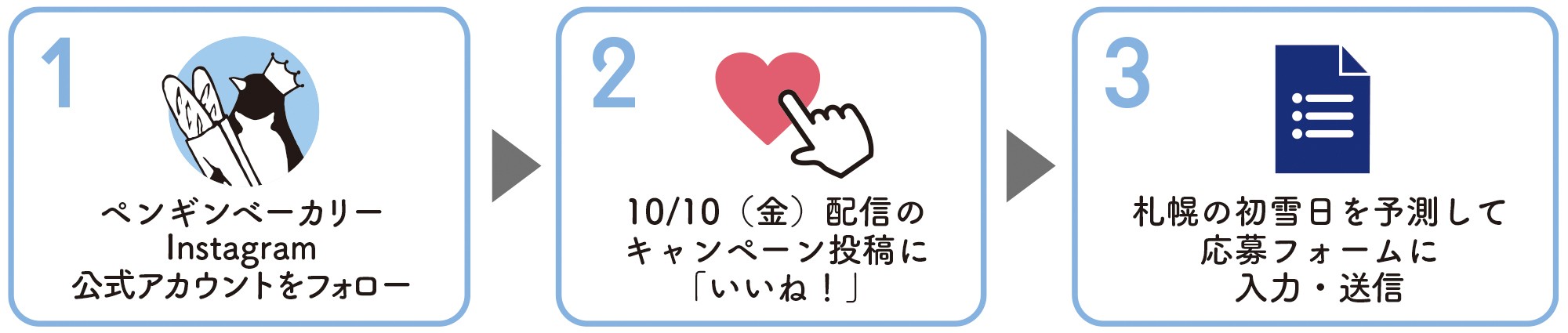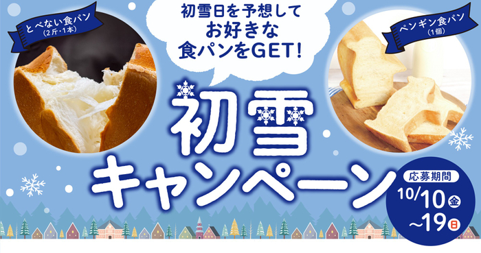 ペンギンベーカリーでは今年も、札幌の初雪日を予想して、見事的中した方全員にお好きな食パンをプレゼントする『初雪キャンペーン』を開催いたします。