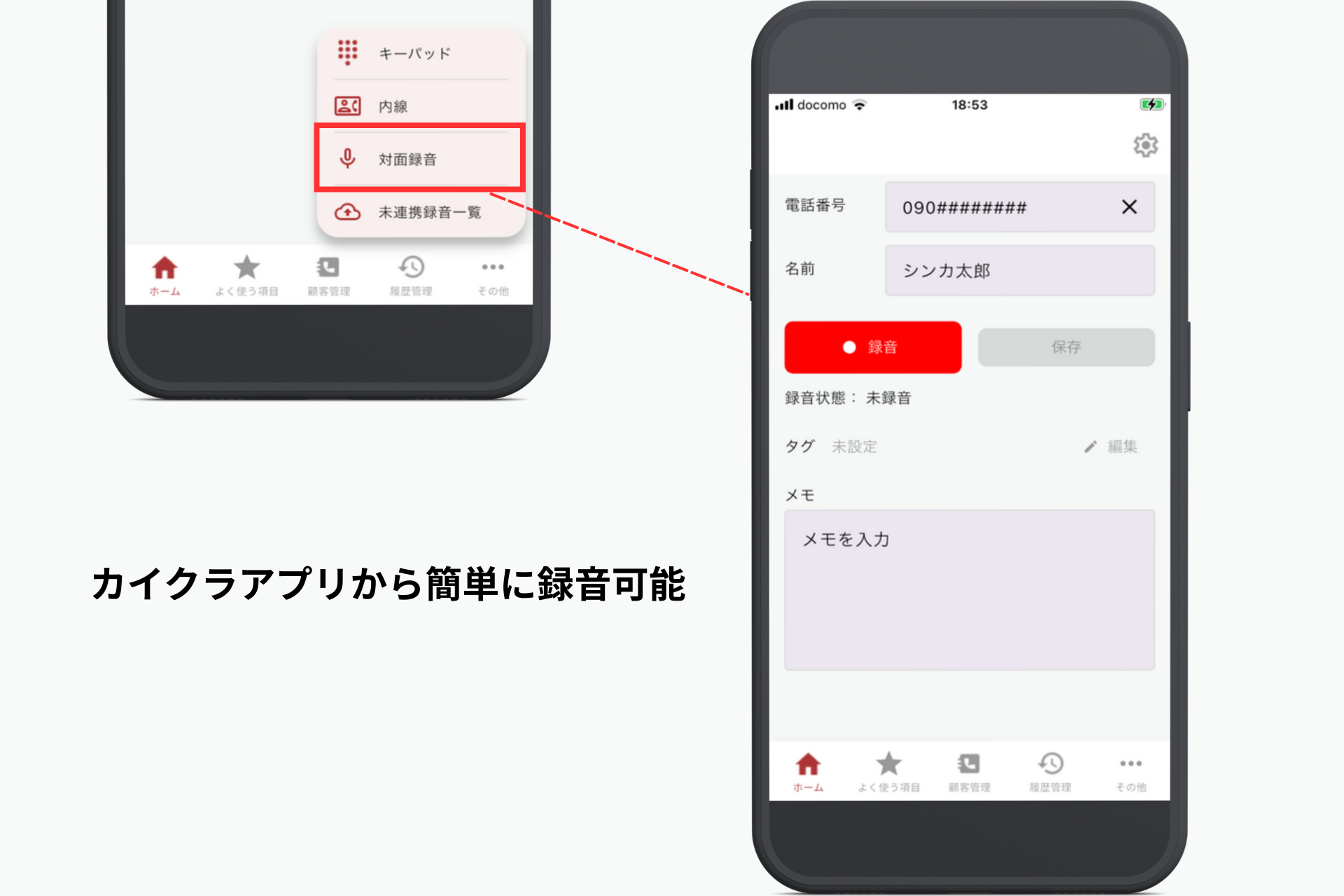 これまで、カーディーラーや不動産などの店舗営業において、電話対応の履歴は「カイクラ」で可視化・資産化されてきましたが、来店時の対面商談の履歴については別のシステムや各担当者による管理となっているなど、情報の分断が大きな課題となっていました。