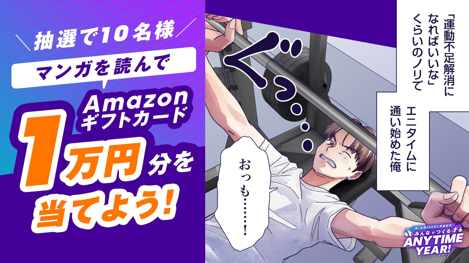 【100万人突破記念エニタイムYEAR】 エニタイムフィットネスジャパンXアカウントでオリジナルマンガ公開記念キャンペーンの実施