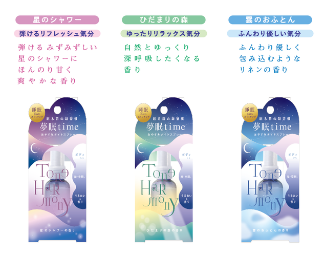 そこで、ビューティーワールドは穏やかな睡眠をサポートする「トーンハーモニー」というブランドを立ち上げました。薬に頼るのではなく、自然とリラックスして眠れる環境づくりのお手伝いになればと思っています。