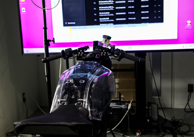 「それが『二輪シミュレーター』の開発です。ライダーがバイクに乗っている間の動作を多様なセンサーで計測し、運動解析を行いながら開発を進めてきました。二輪はエンジンや電装による強いノイズ、極端なバンク角が生じるなど、正確な位置・動作計測が困難です。しかし、地元大田区出身の世界的ロードレースライダー・岡谷雄太選手にテストライダーとして協力いただいて多様なデータを取得し、開発が現在、進行中です。完成後には、バイクメーカーのテスト走行への活用や、エンターテイメントの分野でバイクを操作できるリアルな体験を提供したいと考えています」(渡辺氏)