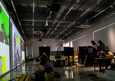 「当社では、デジタル×リアルをテーマに、映像・照明機器を連動させて博物館、美術館、文化・商業施設、舞台美術などのプロジェクションマッピング、VRコンテンツの制作などを手掛けています。こうした施設で投影する映像は、多くが巨大なサイズの展示であり、それを実寸でプロトタイピングするために広大なスクリーンが設置できる場所が必要でした。ここで実際に投影してクライアントとともに映像を複数回チェックし、改善点を都度フィードバックして徐々に精度を上げていきます。やはり実物大で確認できるのは何にも代えがたい強みです」(渡辺氏)