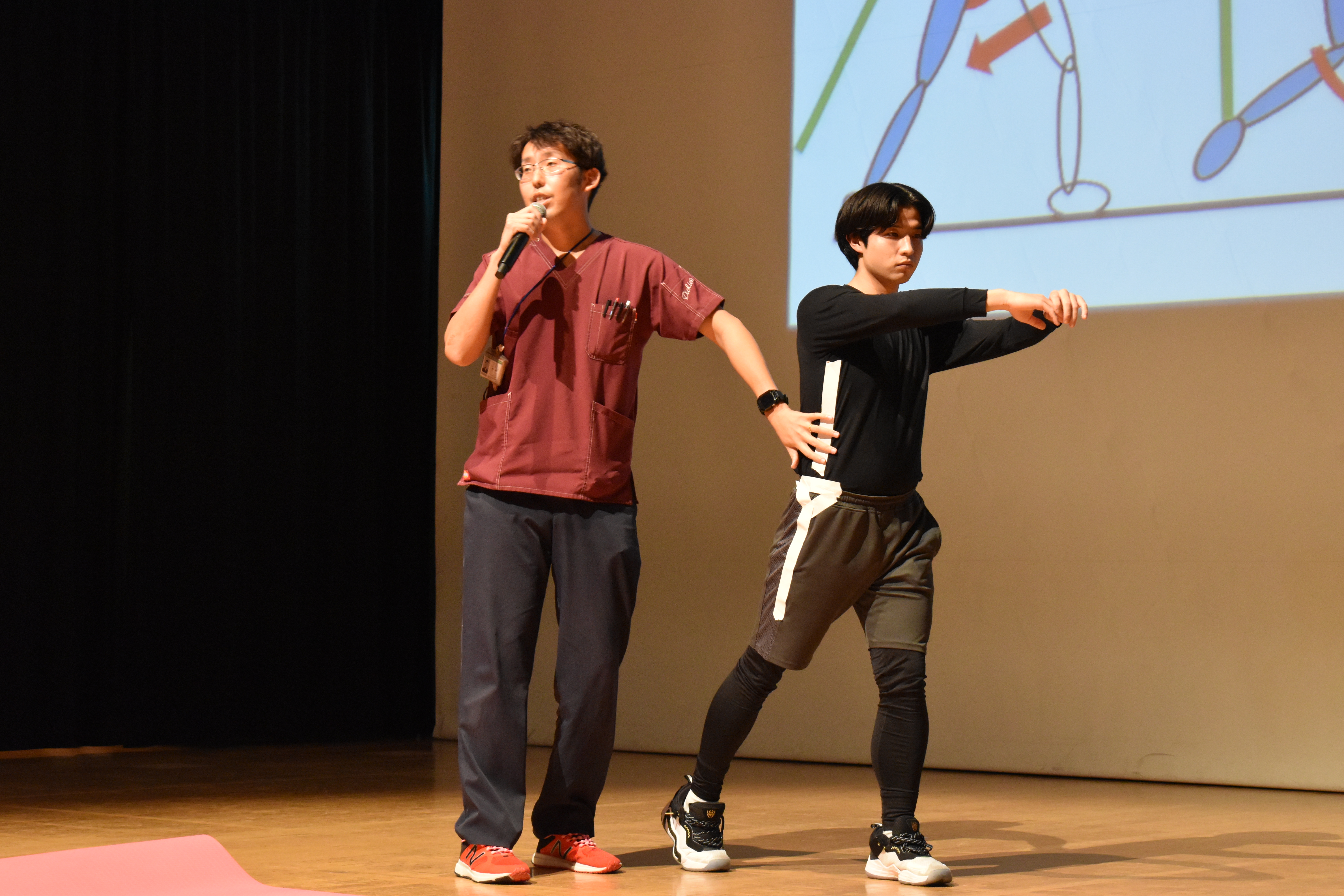 <li>理学療法士による実演では、「股関節をしっかりはめる」「後ろを大きく歩く」ことの重要性を体感</li>