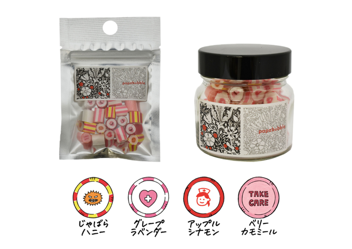 そこで、「世界一おもしろいお菓子屋さん」アート・キャンディ・ショップ「PAPABUBBLE/パパブブレ」は、贈るひとの気持ちが伝わる、デザインや味にこだわった手作りののど飴を開発。2021年11月1日(月)より贈るのど飴「のど飴ミックス」や新しいスタイルのキャンディ「フレーバーマドラー」を発売いたします。