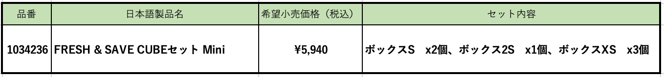 FRESH & SAVE CUBEセットMiniアイテム情報