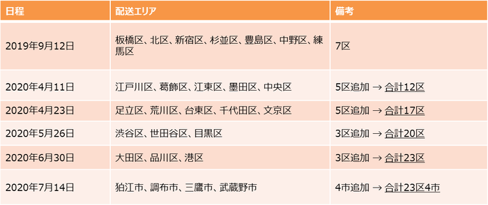 さらに、お客様からのご要望にお応えし、11月12日には大阪府大阪市の5区※1(旭区、都島区、西淀川区、東淀川区、淀川区)と3市※1(吹田市、摂津市、豊中市)が新たに配送エリアに加わり、東京23区・4市※1、大阪府大阪市21区・3市※1のプライム会員のお客様が当サービスをご利用いただけるようになりました。※2