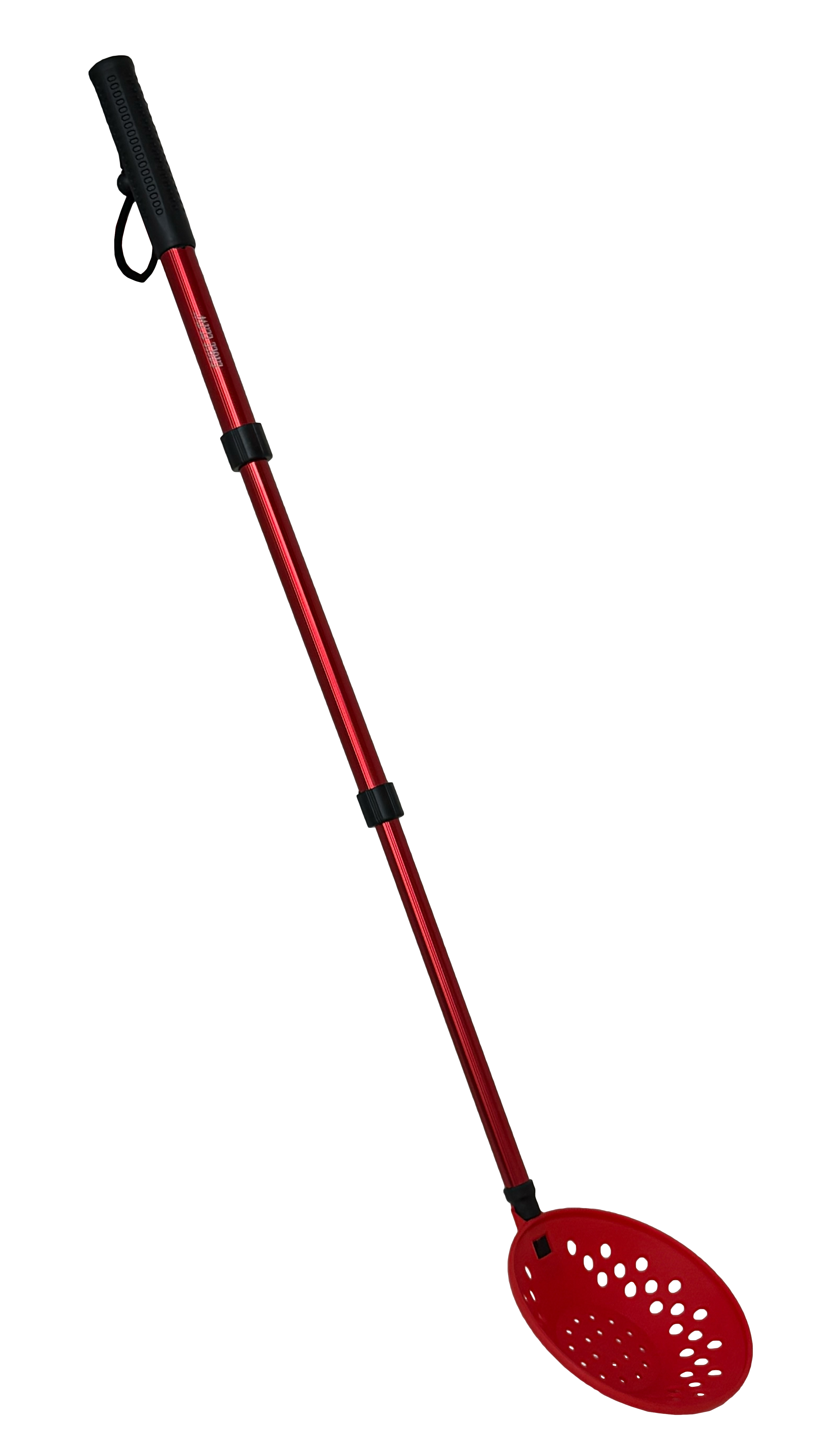 ハンドルは耐久性のある軽量アルミ製で、直径約5.75インチ(約14.6cm)の大きなプラスチックスクープが水面の氷を簡単に取り除き、釣りをスムーズに行えるアイテムです。