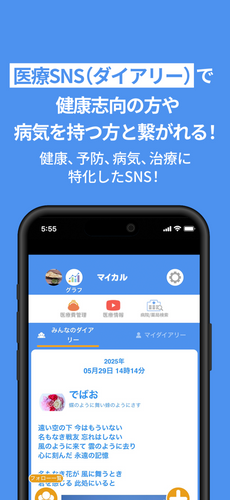 ・医療SNS:日記を書いて、同じ悩みを持つ患者同士が交流できます。