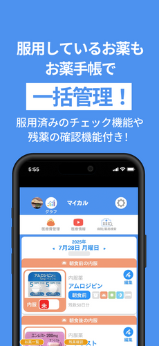 お薬の管理もアプリで可能で、ダイアリー機能を使えば、自分の病気の経過を記録できるだけでなく、他の人のダイアリーを共有・閲覧することもできます。