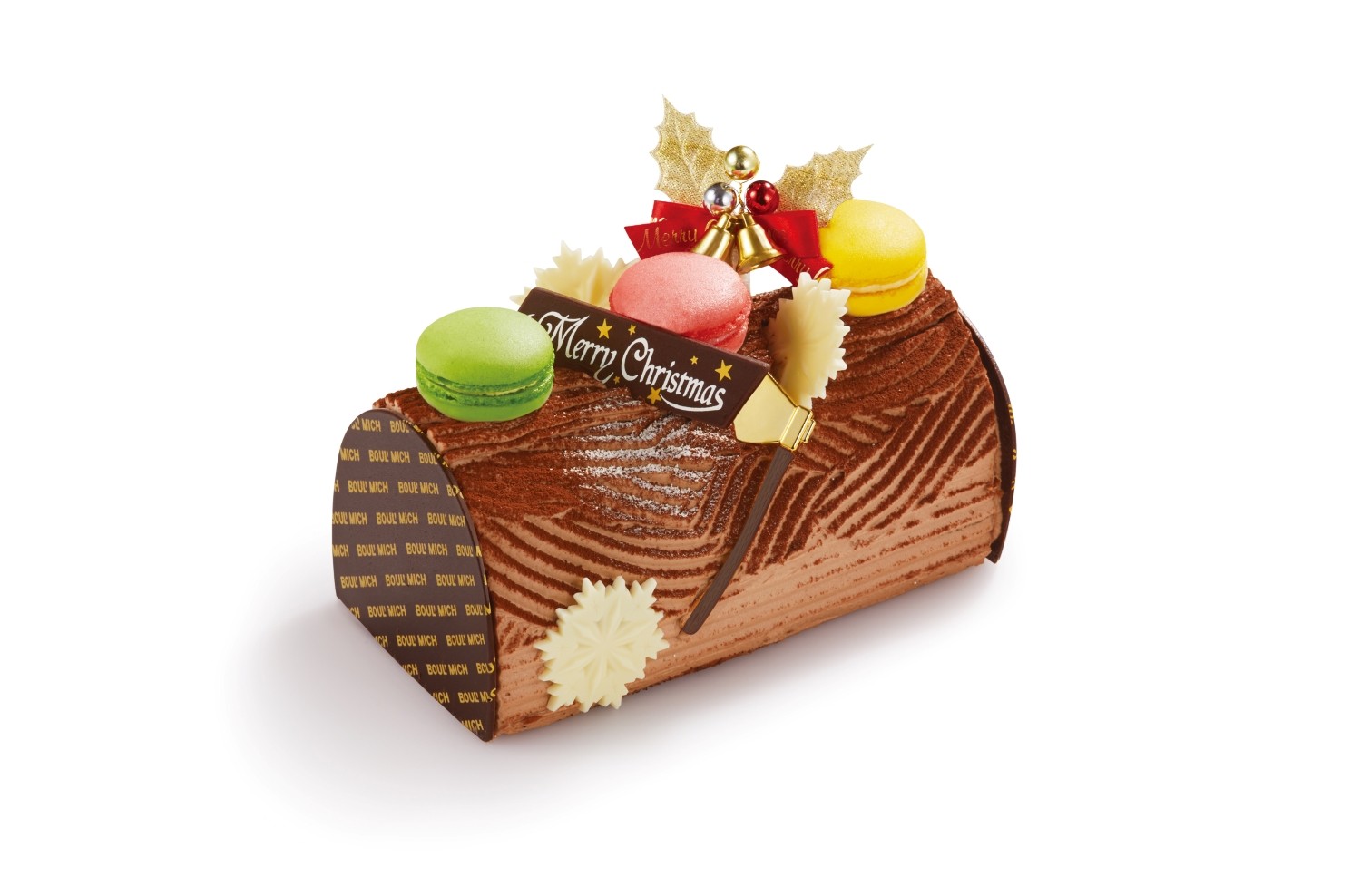 カラフルなマカロンが楽しい薪の形のクリスマスケーキです。