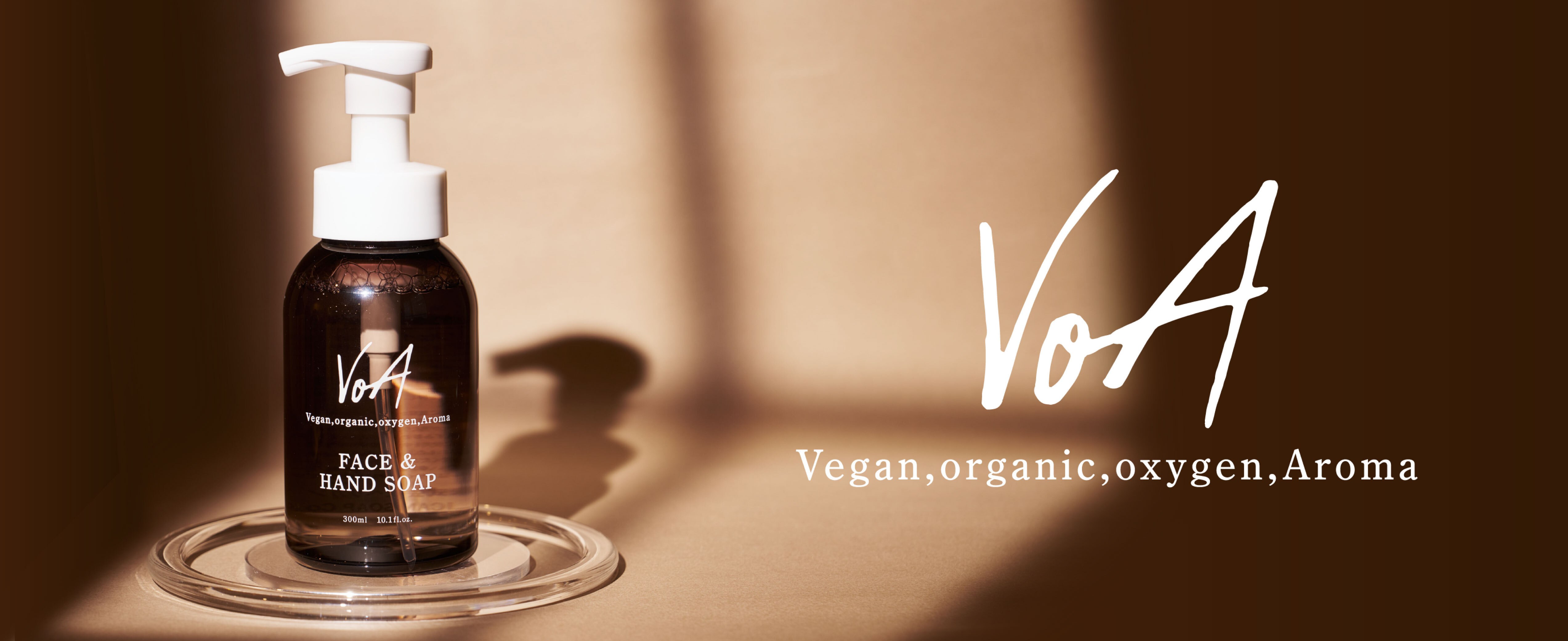 ブランド名の『VoA』は、4つのこだわりでもある、Vegan(ヴィーガン)、organic(オーガニック)、oxygen(オキシジェン)、Aroma(アロマ)のアルファベット頭文字から名付けられました。髪とお肌を潤すボタニカルエキス(*1)&アルガンオイル(*2)と、森林にいるかのようなウッディアロマで至福のバスタイムをお楽しみいただけます。