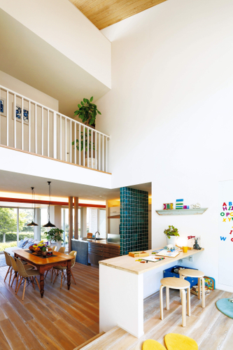 吹き抜けは、上下の空間がつながる気持ちの良い空間です。住宅の断熱性能の向上により、滞在時間が長いリビングでも、広々とした空間性と居心地の良い快適性を備えられる吹き抜けが実現可能になりました。これにより暮らしは家ごと大きな空間に広がります。
