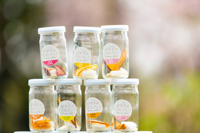 全国のフルーツやエディブルフラワーなどが集まり、現在は12種類の国産フルーツ(ゆず、もも、りんご、いちご、オレンジ、キウイ、レモン、メロン、梨、柿、みかん、さくら)がラインナップされており、日本酒とフルーツの相性を楽しんだり、紅茶や炭酸水でノンアルコールで楽しむ人も増えています。