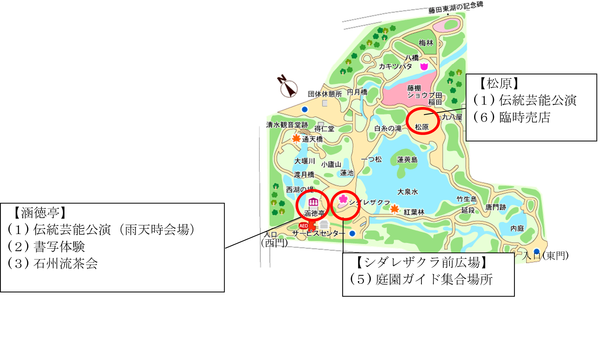※雨天の場合は、涵徳亭(かんとくてい)にて実施。各回開始20分前より定員70名、先着順で受付します。