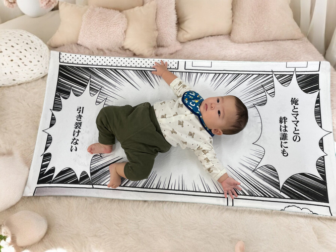 7月17日の「漫画の日」を記念して、赤ちゃんが漫画の主役になれる『漫画フレームバスタオル』を7月17日から7月23日までの1週間限定セールを開催いたします。このバスタオルは、自由に文字を入れることができるため、世界に一つだけのオリジナルアイテムとしてご利用いただけます。家族の思い出作りやギフトにぴったりなこのアイテムを、特別価格でお求めいただけるチャンスです。
