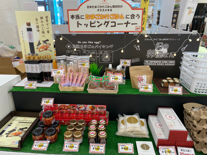 店頭にはたまごの他にも、(一社)日本たまごかけごはん研究所が厳選した『本当にたまごかけごはんに合うトッピングコーナー』を併設。