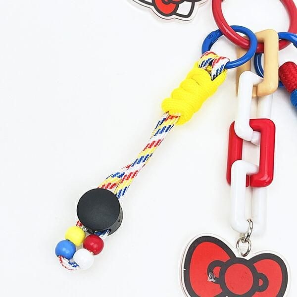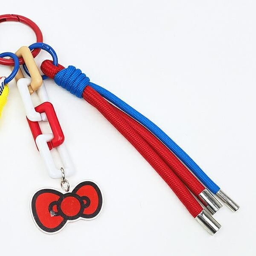 キティの愛らしいフェイスチャームにチャームポイントのリボンそして、ブルー、レッド、ホワイトとキティカラーがチャームにたくさんつかわれています。