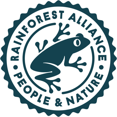 レインフォレスト・アライアンス認証マークは、生産者が森林を保護し、生活を向上させ、農場労働者の人権を推進し、気候危機を緩和し適応するための農法に従っていることを意味します。小さな緑のカエルがついている製品を選ぶことで、人と自然にとってより良い未来への支援となります。