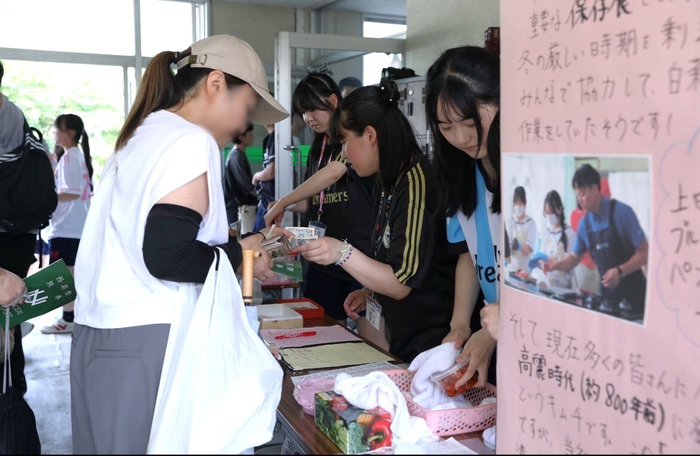 その後実際にキムチを漬ける工程の一部を高校生と行い、7月5日(土)、7月6日(日)の文化祭にて販売。