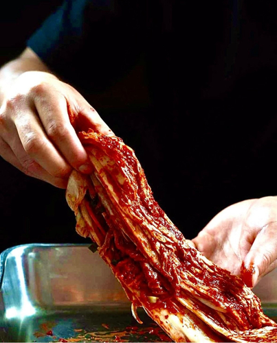 日本酒やアミエビの塩辛などを使い、日韓の伝統を掛け合わせたキムチの