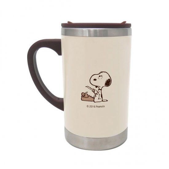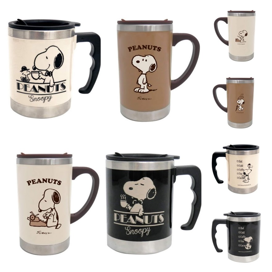 ちょっと大きめ400mlサイズもありますよ♪こちらも蓋がついているので飲み物をゆっくり楽しめそう!ウッドストックも登場して、ほほえむスヌーピー☆オシャレなコーヒーショップでの一コマみたい。
