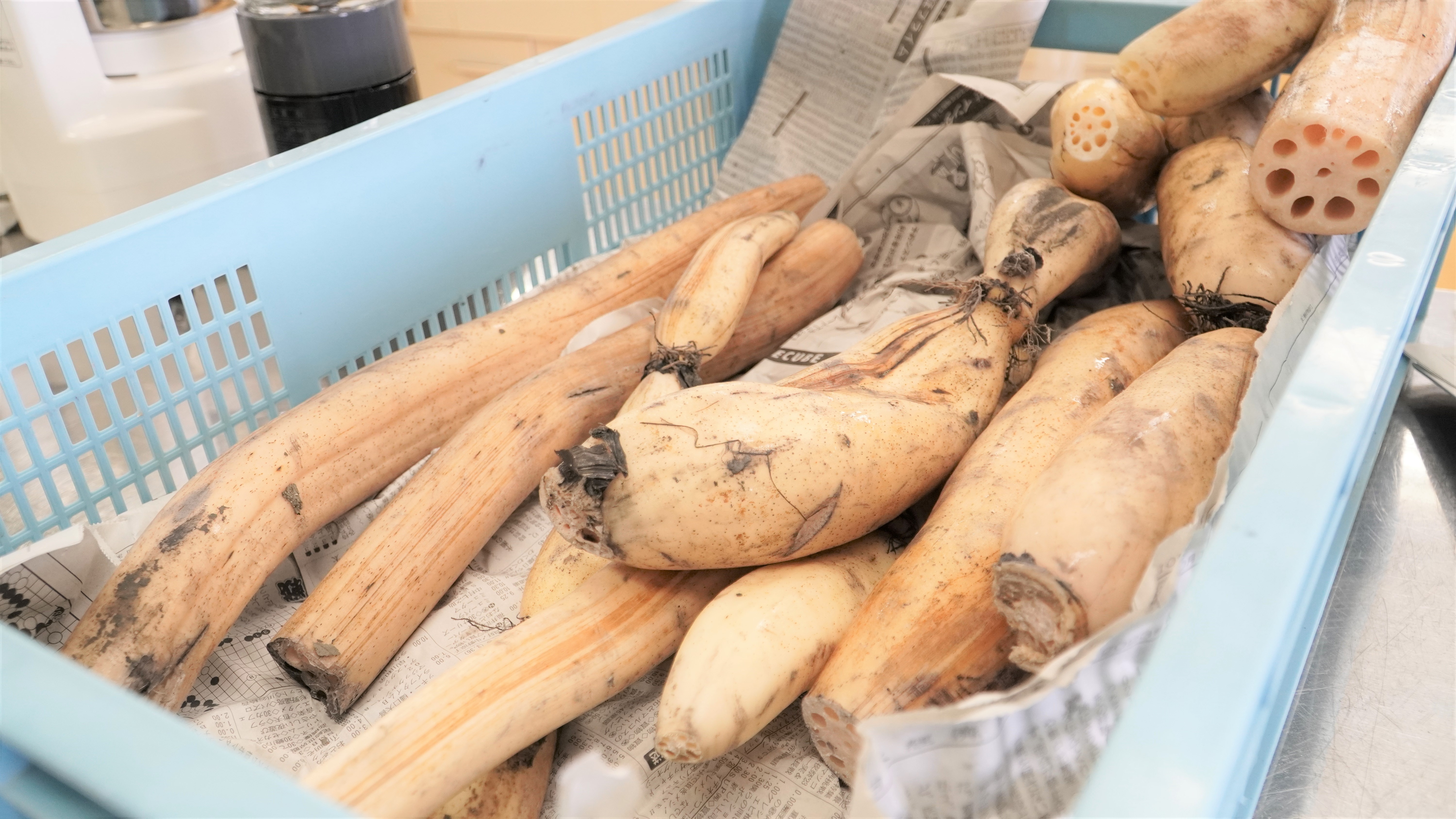 海老澤セミナーでは、大学近隣で古くから栽培されてきた門真れんこんを使ったメニュー開発に2年生が取り組んでいます。今年度は学生の考案した4品(ティラミス、パンケーキ、コロッケ、クレープ)をJA北河内にて料理教室の形で発表させていただきました。
