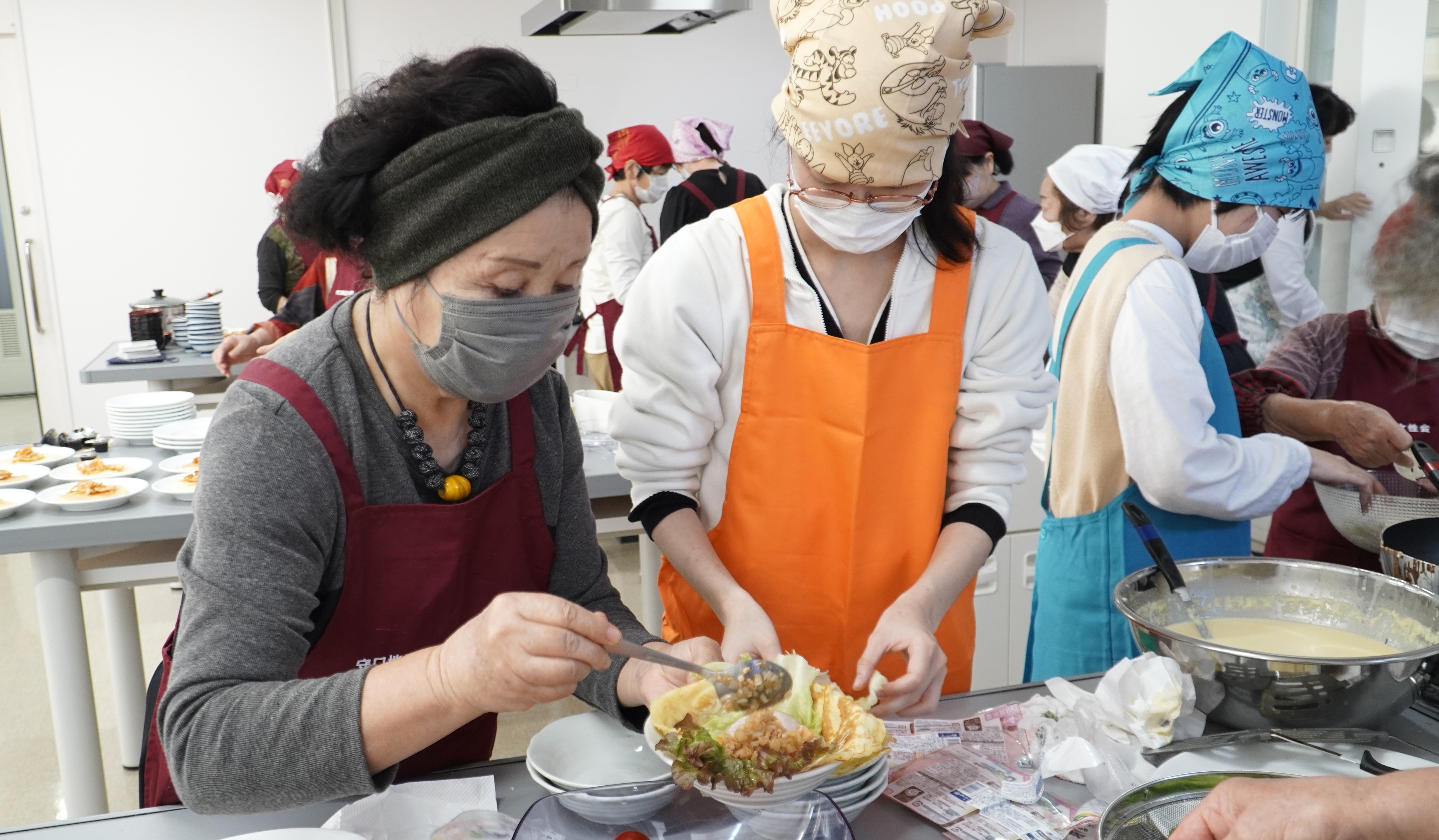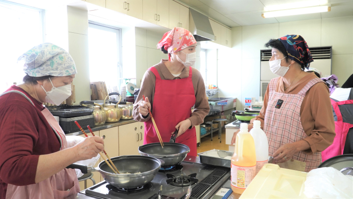 料理教室ではJA北河内の女性会のみなさまに作り方を説明しながら一緒に調理を行いました。