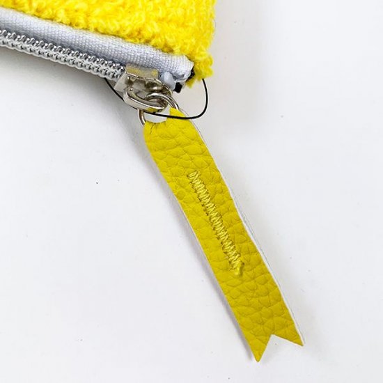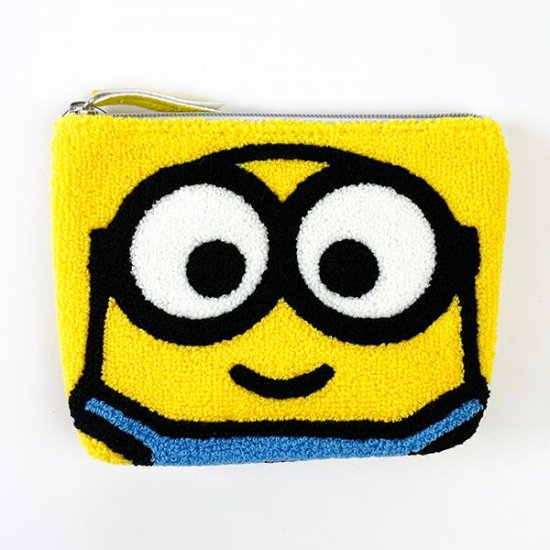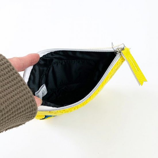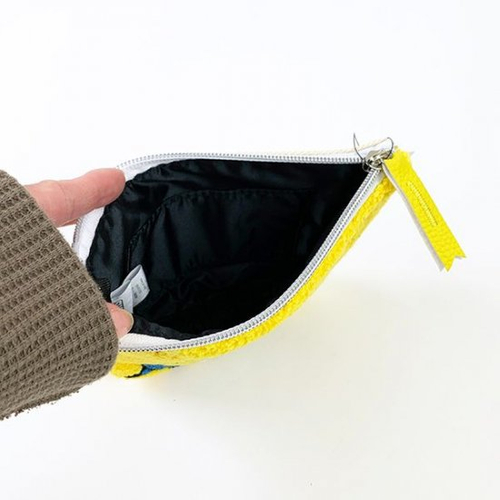 ミニオンは2種類ご用意しました。一つ目はこちらのお顔アップバージョン!ミニオンの鮮やかな黄色とサガラ刺繡がマッチしたポーチとなっています。ファスナーの持ち手の部分は合皮でアクセントを加えており、細かい部分にもこだわりを感じます。