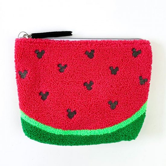 同じく赤繋がりでスイカデザインもございます。スイカがそのままポーチになったちょっと美味しそうなポーチ♡スイカの種が隠れミッキーになっているキュートさも素敵です。(隠れてないかな?)