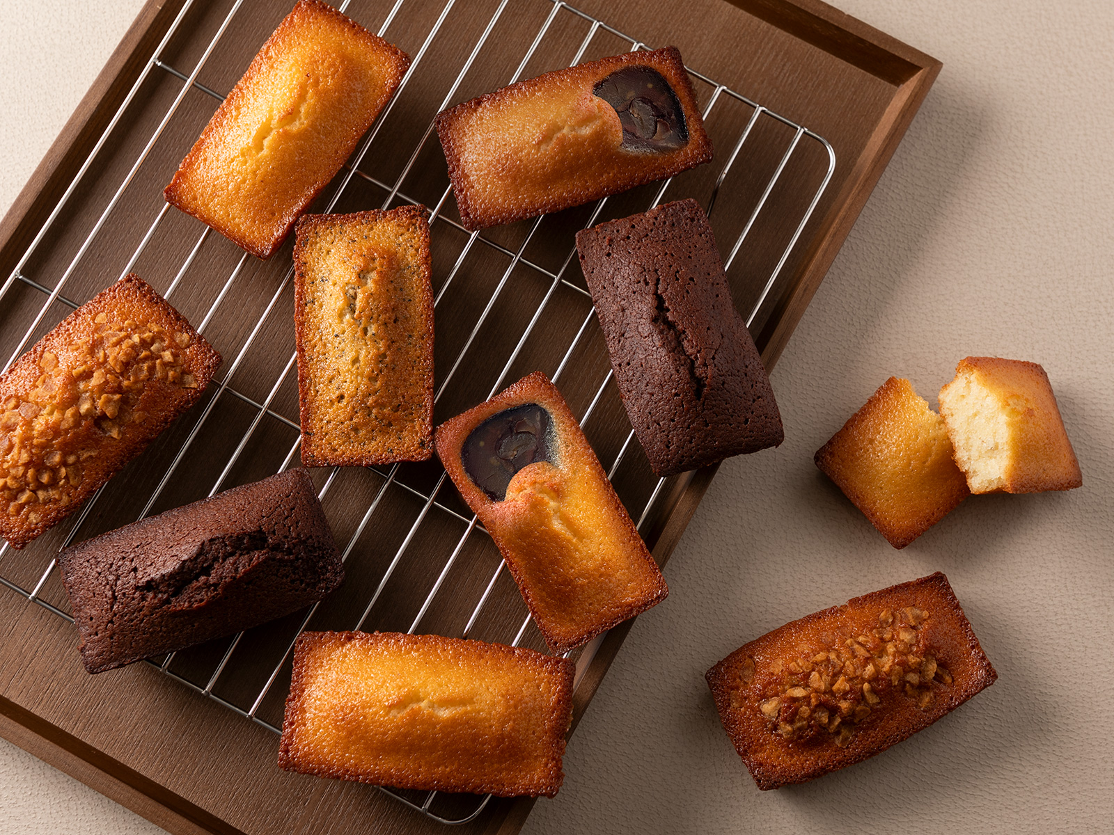 定番人気の「はちみつフィナンシェ」に加え、限定フレーバー「和栗」「紅茶」「ショコラ」「メープル」の全5種類をご用意しました。