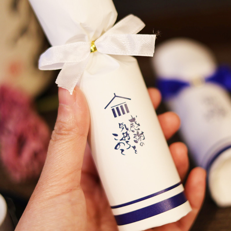能登地方は、「能登杜氏」と呼ばれる酒造りのプロフェッショナルが集まっており、日本酒の銘醸地として知られています。地震の影響で11社の蔵が全壊する等、その被害は甚大です。今回開発した商品は、能登の豊かな日本酒文化を象徴する、とっくりを模したプチギフト。中には、石川県小松市の西出酒造から取り寄せた、酒粕を使用した酒粕飴が入っています。西出酒造は、酒蔵の内装外装の土壁崩れ、建物隙間発生、コンクリート壁床ひび割れをはじめ、屋根瓦の損壊があったとの事です。