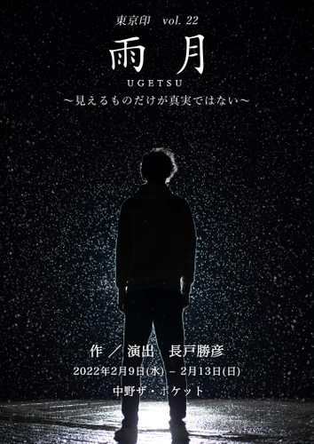 東京印(主宰:長戸勝彦)主催による東京印公演vol.22『雨月』が2022年2月9日(水)~2022年2月13日(日)に中野ザ・ポケット(東京都中野区)にて上演されます。チケットはカンフェティ(運営:ロングランプランニング株式会社、東京都新宿区、代表取締役:榑松 ⼤剛)にて12月5日(日)12:00より発売開始予定です。