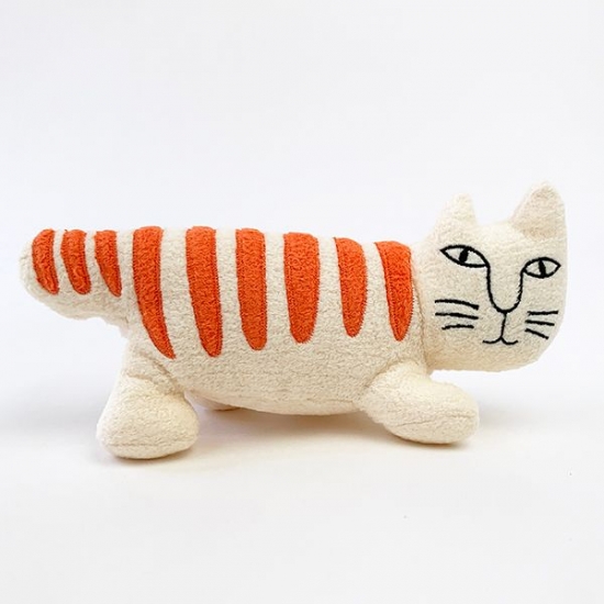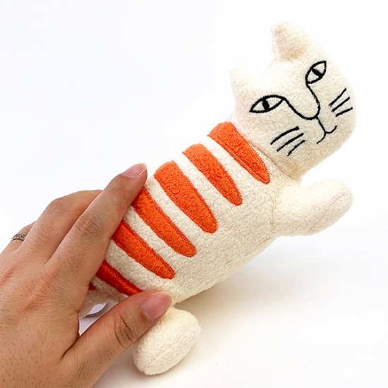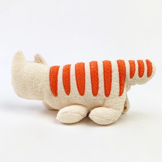 クリーム色にオレンジのシマ模様のマイキーのぬいぐるみです。
