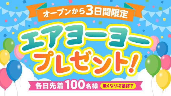 リニューアルオープンを記念して、3月20日(金・祝)~22日(日)の3日間限定で、キッズパークをご利用のお子様を対象に、各日先着100名様へ「エアヨーヨー」をプレゼントいたします。