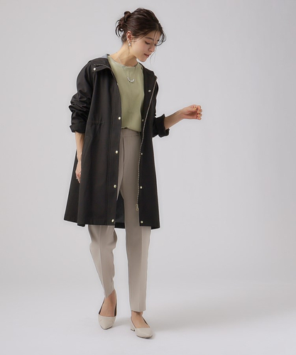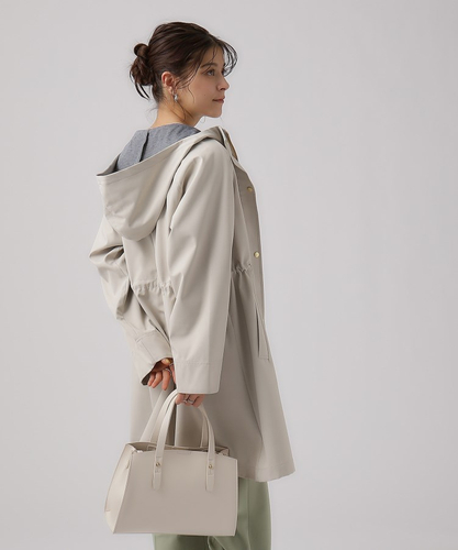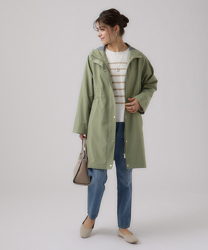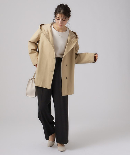 ●デザイン:通勤からカジュアルまでデイリーに着やすいフーディーコート。ウエストが絞れるので気になる腰回りなど体型カバーも叶います。裏側に柔らかなカットソー素材を張り合わせたボンディング生地を使用しているので暖かく、ロングシーズンご愛用いただけます。