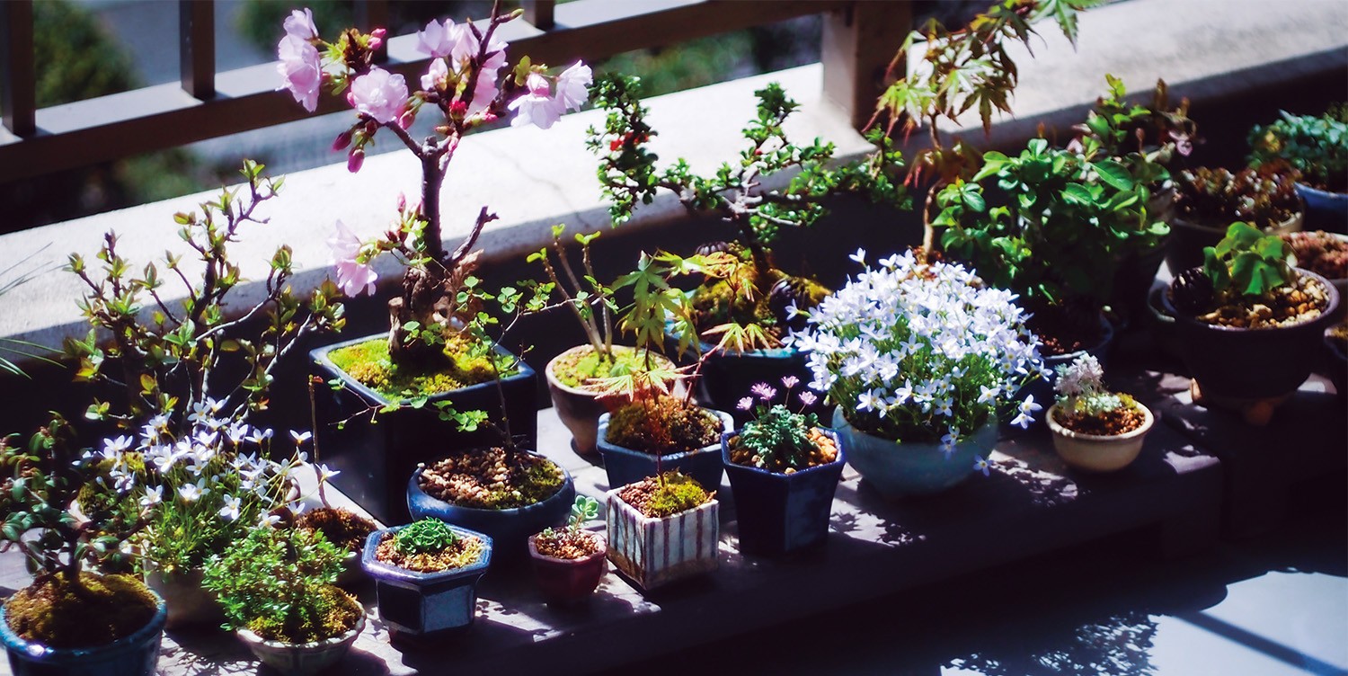『ベランダで豆盆栽鉢で楽しむ ゆびのさきにかわいいみどり』