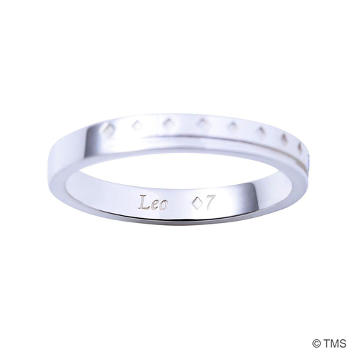 トップのリングにはレオのファッションアイテムのデザインを取り込み、もう一方のリングにはイメージカラーストーンをセットした、
