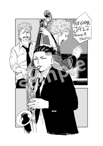 広島県出身で漫画家の平川哲弘(ひらかわてつひろ)氏が「広島じゃズ」のために描き下ろしたイラスト入りのオリジナル限定グッズや直筆サイン入りアートパネルのほか、ステージ前の特別観覧席チケットなど。限定アイテムを手にぜひ会場でお会いしましょう!
