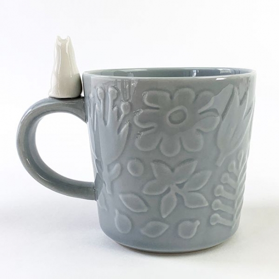 お花のレリーフも素敵です。ほっこりした時間を過ごせますね。持ち手の形もシンプルなので、使いやすさも抜群です。