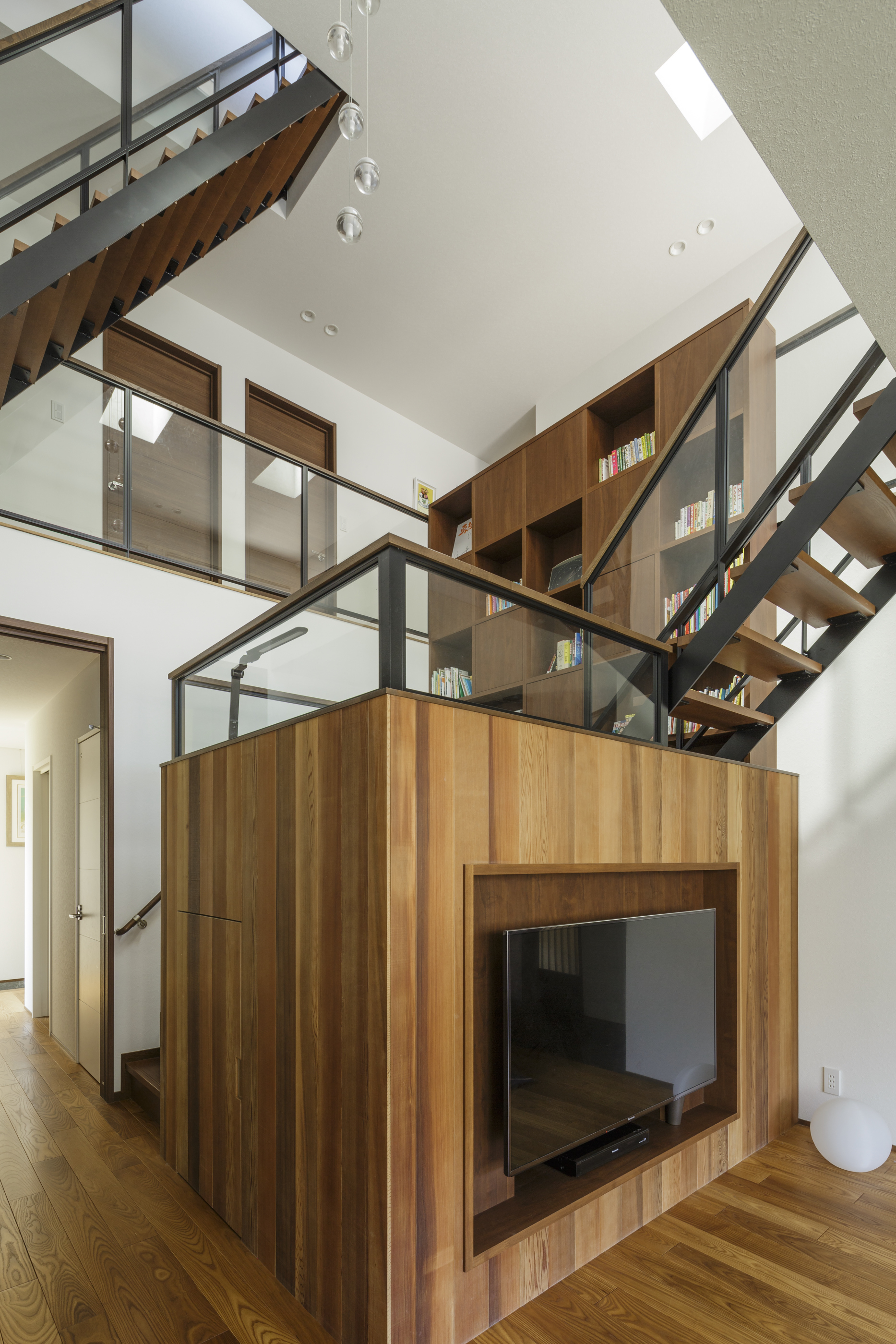 スキップラウンジの真上には天窓があり、家の中央にありながら自然光がたっぷり注ぎ込みます。「前のマンションは天井が低かったので、特にこのリビングでは解放感を味わっています。」と夫のM様。明るく暖かい空間なため、自然とお子様たちも集まってくるそうです。