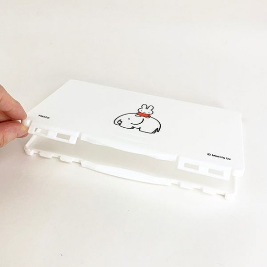 ブルーナアニマルズのゾウに乗ったミッフィーがデザインされた、マスクケースです。抗菌仕様で、ホワイトの本体も衛生的なイメージですよね。