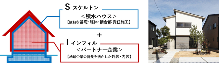 SI事業では、パートナー企業の販売手法や外装・内装の独自性が確保され、かつ積水ハウスグループによる施工が伴う点でフランチャイズとは異なります。お客様と契約し、保証やアフター対応を行うのはパートナー企業です。2025年度までに年間300棟を目標としたうえで、その後も全国のパートナー企業とともに展開してまいります。積水ハウスはSI事業を通じて今まで培った技術をオープン化することで、国内の住宅の耐震性をより一層高め、良質な住宅ストックの形成に貢献します。