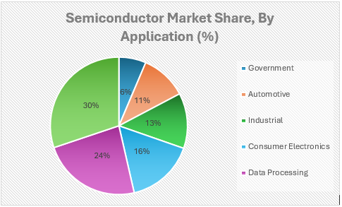 半導体は、シリコン、ゲルマニウム、シリコンカーバイドなどの材料から構築された回路または要素で構成される電子デバイスの一種です。これらの電子部品は、電子機器やシステムの不可欠なコンポーネントであり、メモリデバイス、ロジックデバイス、アナログ集積回路、メモリ保護ユニット、マイクロコントローラユニット (MCU)、ディスクリートパワーデバイスなどが含まれます。ネットワーク通信デバイス、データ処理、産業オートメーションシステム、消費財、自動車や政府プロジェクトの他の多くのセクターなど、さまざまなアプリケーションが組み込まれた電子機器の消費が増加しているため、世界中の半導体セクターは拡大し続ける可能性があります。