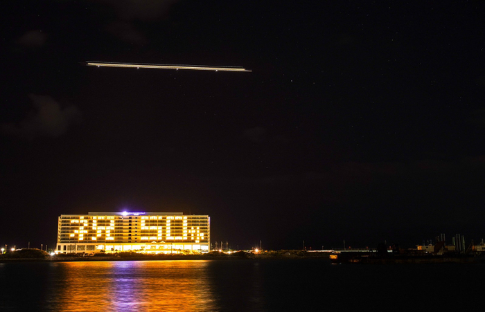 サザンビーチホテル&リゾート沖縄では、「市制50周年」を記念し、ホテル客室を使用して「祝50th」の照明文字でお祝いをいたしました。