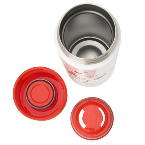 2つ目に紹介するのは、こちらの水筒です。赤色の蓋が目を引きますね。ウッドストックとラブラブなスヌーピーがとっても可愛いです。ハートマークがとってもキュートですよね♪