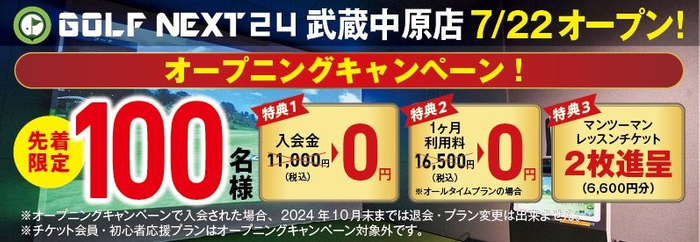 不動産業を始め郊外に出店を進めるインドアゴルフ施設「GOLF NEXT 24(略称GN24)」を運営するワイムシェアリング株式会社(東京都新宿区、代表取締役社長 佐藤 直史)は、7月22日に神奈川県川崎市に武蔵中原店をオープンいたします。